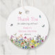 Bohème, estivale et élégante, cette étiquette de remerciement pour une baby shower de mariage présente un champ coloré de fleurs sauvages délicates avec des papillons, des bourdons et des coccinelles.