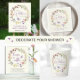 Douche bébé crème pâle merci préférez les étiquettes avec "merci" et "un petit fleur sauvage est en route" dans un script chic lavande, une aquarelle en forme de couronne d'inspiration boho composée de fleurs sauvages pourpre, rose, pêche et jaune, et un papillon violet. Ajoutez le nom de la mère et la date de la douche en lavande simple et en typographie grise.