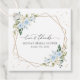 Ajoutez une touche personnelle à votre célébration de la douche nuptiale avec ces objets de fête élégants et mémorables ! Le design présente des fleurs d'aquarelle bleu et blanc, de la verdure, des confettis dorés et un cadre doré sur un arrière - plan blanc.