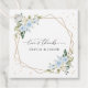 Ajoutez une touche personnelle à votre fête mariage avec ces objets de fête élégants et mémorables ! Le design présente des fleurs d'aquarelle bleu et blanc, de la verdure, des confettis dorés et un cadre doré sur un arrière - plan blanc.