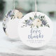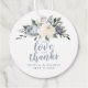 lettres "avec amour et remerciements" avec floral botanique aquarelle romantique et verdure en jaune doux, bleu poussiéreux et gris, doux et élégant, personnalisable avec les noms des couples et la date, étiquettes de faveur idéales pour les mariages, les enterrements de vie de jeune fille, les baby showers ou tout événement spécial.