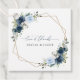 Ajoutez une touche personnelle à votre fête mariage avec ces objets de fête élégants et mémorables ! Le design présente des fleurs marine et bleu aquarelle, de la verdure et un cadre doré sur l'arrière - plan blanc.