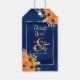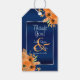 Étiquettes-cadeau Fleurs orange sur bleu marine