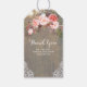 Étiquettes-cadeau Fleurs roses et Mariage de bois rustique