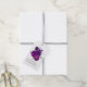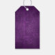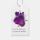 Étiquettes de cadeau florales violettes avec feuillage vert et verso calligraphié vintage.