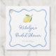 Ce design moderne de serviette présente une bordure «gribouillée» dessinée à la main tendance avec un citron aquarelle peint à la main sur fond blanc pour une sensation fraîche et estivale. Montré ici pour une douche de mariage, mais bien sûr, le texte pourrait être personnalisé pour n'importe quel événement.