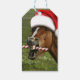 Étiquettes-cadeau Funny Christmas horse with Santa hat smiling