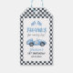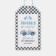 Étiquettes de cadeau pour le 1er anniversaire de garçon de voiture de course bleue