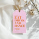 GET READY TO EAT DRINK AND DANCE! Modern soft pink, orange bold font, wedding gift tags with your names and date.