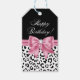 Étiquettes-cadeau Glam rose Bow Diamond Black Leopard Joyeux Anniver