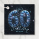 The typography is set against a sophisticated dark navy and black background, illuminated by scattered faux glitter dust and bokeh lighting effects for a magical, night-sky aesthetic. The name and "Birthday" script feature a stylish teal-to-silver gradient, adding a modern and chic finish.