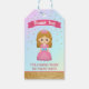 Balises cadeau d'anniversaire avec une adorable petite princesse avec typographie moderne sur un arrière - plan pastel dégradé arc-en-ciel.
