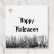 Gothique Halloween Party préférence tag, avec un design typographique déplaisant et une image en bois hanté noir et blanc. Avec du texte en noir et blanc, vous pouvez ajouter vos propres informations. Un ajout éffrayant à votre prochain costume ou fête d'Halloween.