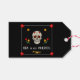 L'étiquette cadeau montre un crâne avec des coeurs dans les yeux, des fleurs et une croix sur le front. Le texte de Dia de los Muertos se trouve sous le crâne de sucre. Il y a des fleurs, des coeurs, une trompette et des shakers. L'arrière - plan est noir. La couleur de l'autre côté pour l'écriture est un rouge vif. Jolie et digne conception de vacances hispaniques. Célébrez et honorez la vie de personnes bien-aimées qui sont décédées, sur Dia de los Muertos, ou Jour des Morts, en Octobre / Novembre. Un produit dans une suite de fête.