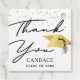 Le Merci de graduation noir, or et blanc élégant privilégie les étiquettes comportant une typographie manuscrite, une casquette de graduation en feuille d'or métallique ou un mortier et personnalisées avec le nom et l'année de cours de votre diplômé. ASSISTANCE : Pour obtenir de l'aide sur la modification ou la personnalisation de la conception, le changement de couleur ou le transfert de la conception à un autre produit, contactez le concepteur AVANT DE COMMANDER via l'onglet MESSAGE Conversation Zazzle ou envoyez un courriel à makeitaboutyoustore@gmail.com.