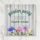Garden party graduation with pink and white roses as well as blue and purple wildflowers.