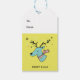 Ajoutez des couleurs et des graphismes rétros à votre cadeau pour cette période de fêtes. Un renne heureux portant un foulard rose vous souhaite de joyeux Noël. Le dos de la balise est recouvert de décorations rétro. Les lignes A et A peuvent être personnalisées pour ajouter des noms ou customisées pour ajouter votre propre texte. N'oubliez pas de choisir une couleur ruban !