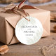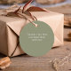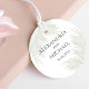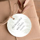 Merci à vos invités dans le style avec cette élégante marque de faveur mariage avec des feuilles d'aquarelle et des accents botaniques inspirés d'un cadre de plage tropicale. Avec ses tons verts luxuriants et ses subtiles illustrations de palmiers, ce tag ajoute une touche fraîche et naturelle à votre décor de réception. Conçu pour se coordonner magnifiquement avec les mariages de destination ou côtiers, il comprend un message sincère de la mariée et du marié, ce qui en fait une touche de finition parfaite pour vos faveurs d'invités.