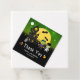 Cette étiquette de faveur amusante et éffrayante présente de mignons monstres Frankenstein à côté d'une maison hantée. Dans l'arrière - plan est une pleine lune avec des chauves-souris et un ciel de nuit vert avec des étoiles. Le texte combine les polices décoratives et serif pour un look élégant et moderne. C'est parfait pour une fête d'anniversaire à thème Halloween.