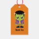 Balise cadeau Merci avec une image Halloween amusante avec un monstre Frankenstein vert.