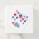 Cette étiquette de faveur brillante présente un design amusant de fête de l'Indépendance des étoiles rouges, blanches et bleues décoratives dans un arc gracieux sur la belle calligraphie qui dit 'Happy 4 juillet'. Parfait pour les fêtes de queue et les barbecues pendant que vous fêtez l'occasion. Cherchez ID1103 pour voir tous les produits de coordination avec ce design gai.