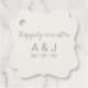 Customisez ces élégantes étiquettes de faveur mariage avec un design simple et minimaliste. Une élégante, joyeuse et pleine de joie "heureux toujours après" typographie en argent, suivie par simple et moderne sans serif police pour les jeunes mariés monogrammed initiales et date mariage, sur arrière - plan blanc perle sophistiqué et traditionnel.
