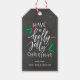 Les étiquettes cadeaux de Noël festifs comportent "un Noël saint et joyeux" en caractères blancs et en lettres de la main sur un arrière - plan de tableau noir, accentué de feuilles et de baies rouges et verts. Personnalisez avec vos noms ou salutation personnalisée en dessous. Vide à l'envers pour écrire à la main le nom du destinataire du cadeau.