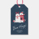 Cette étiquette cadeau de Noël fantaisiste comporte un arrière - plan bleu profond en option surmonté de caractères d'ours blancs et rouges et d'un texte de typographie de 'Bear Hugs.' L'inverse est un motif d'ours polaire correspondant. Un modèle fourni vous permet d'ajouter facilement un message personnel et vos noms. Recherchez ID851 pour voir tous les produits de coordination pour cette conception.