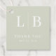 Cette étiquette de faveur de mariage présente un design minimaliste avec un fond vert doux et atténué et une typographie serif élégante. La mise en page est propre et équilibrée, mettant en valeur les grandes lettres majuscules « L » et « B » divisées par une ligne verticale, suivies des mots « MERCI » en plus petit texte en dessous. Le style général dégage une sophistication moderne, ce qui en fait un choix parfait pour exprimer votre gratitude lors de votre événement spécial. Son esthétique simple mais raffinée garantit qu'elle complète sans effort n'importe quel thème de mariage.