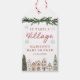 Add a festive finishing touch to your favors and gifts with these It Takes a Village winter baby shower gift tags. Featuring a cozy watercolor village surrounded by snowy evergreens and delicate snowflakes, the design is accented with a lush greenery garland across the top. “It Takes a Village” appears in elegant red script, with customizable text for the mom-to-be’s name and shower date below. Perfect for winter or holiday baby showers, these tags bring warmth and coordinated charm to your celebration décor.