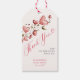 Un design charmant et contemporain qui exsude la romance et la gaieté, idéal pour les fêtes de fiançailles de toutes saisons - et particulièrement adapté pour une célébration de la Saint-Valentin. Caractérisé par une mise en page fantaisiste avec des cœurs aquarelles fantaisistes dans des tons de rose tendre, blush et rose, avec des tiges et des pousses comme dans une vigne du jardin de l'amour, cette étiquette de cadeau de fiançailles capture la joie et la chaleur de l'occasion. La calligraphie moderne ajoute une touche d'élégance. Élégant et invitant, ce design donne le ton parfait pour une fête de fiançailles remplie d'amour et de rires, peut-être sous forme de garden-party.