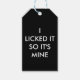 C'est une étiquette-cadeau mignonne qui dit, J'AI AIMÉ ÇA DONC C'EST MIEN, ce qui le rend parfait pour la personne qui ne veut pas partager, et peut marquer leurs articles. Le dos est vide, vous pouvez donc écrire votre propre message.