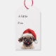 D'un côté de cette étiquette cadeau de Noël se trouve l'adorable image d'un petit chien Carlin portant un casquette du Père Noël rouge et blanc. Le texte rouge stylisé au-dessus de l'image dit "Jingle all the Way". Le dos de la balise a une autre image du chien et votre texte personnalisé. Assurez-vous de voir la sélection des ornements de vacances, cadeaux et enveloppements de cadeaux sur le thème du chien dans notre magasin.