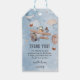 Envolez-vous avec ces adorables étiquettes de remerciement pour un anniversaire sur le thème de l'aviation ! Le design présente un ciel de lavis bleu rêveur, parsemé d'étoiles et de nuages duveteux, tandis qu'un jeune garçon pilote son avion vintage à travers les cieux. Regardez les ballons à air chaud flotter gracieusement en arrière-plan, ajoutant à l'atmosphère fantaisiste. Ces étiquettes de cadeau présentent également un modèle de remerciement personnalisable, ce qui en fait un moyen idéal de montrer votre gratitude à vos invités.