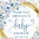 Étiquettes Cadeau Joli bleu poussiéreux fleurs or garçon baby shower