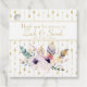 Belle aquarelle de Boho avec fleurs et plumes sur blanc avec flèches or arrière - plan. Customiser avec les détails du couple de mariages