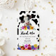 Étiquettes de cadeau de remerciement 'Vache sacrée' florales mignonnes ! Le design présente un fond d'impression de vache moderne, une vache mignonne décorée de florales aquarelles vives et audacieuses et un modèle de remerciement dans une arche blanche facile à personnaliser.