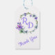 Jolies étiquettes de faveur de mariage faites en blanc, avec une couronne fleurie colorée, avec les initiales de la mariée et du marié faites en lavande. Personnalisez les initiales et le texte pour vos besoins mariages. Des produits correspondants sont disponibles.