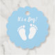 Jote nouveau bébé douche fête pour l'encombrement Favor Tags pour nouveau-né, amis, famille, invités, enfants nouvellement nés etc. Design de petits pieds mignons pour des cadeaux ou des décorations de table do-it-yourself. Ajoutez votre propre nom ou un texte de remerciement au-dessus du pied. Conception recto verso. Convient pour nouveau bébé garçon ou fille. Changez pour n'importe quelle couleur : bleu pastel ou rose. Bordure découpée de l'échelle. Aussi disponible sous d'autres formes comme les coeurs. Avec ou sans chaîne. Élégant script de typographie de brush modèle pour lui ou elle.