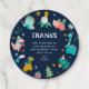 Sympa fête d'anniversaire merci préférez tags - design dispose d'un cadre de dinosaures colorés, habillé en casquette et écharpes avec des cadeaux et vos détails de fête personnalisés dans la typographie moderne contre un arrière - plan bleu marine. Il vous suffit de personnaliser le message de remerciement et d'ajouter le nom de votre enfant.