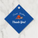 Boy Toys design sur le thème bébé avec l'adorable image des jouets garçons typiques - Une voiture de course, ours en peluche, basket et baseball sont représentés contre un arrière - plan bleu vif. Le nom de l'enfant est représenté dans une arche au-dessus de l'image, plus un message "Merci !" personnalisable est affiché ci-dessous en lettres blanches. Le côté inverse est bleu pâle. Conçu pour coordonner avec le thème de la crèche "Jouets de garçon".