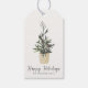 Étiquettes de cadeaux Joyeuses Fêtes présentent un pin peint à l'aquarelle avec un seul ornement.