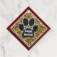 Souhaitez à votre animal de compagnie ou à votre chien marchant un joyeux Noël ou des Joyeux Vacances avec cette marque de service en or et en argent brillant en forme de losange qui comporte une feuille ridée ou un motif métallique entouré d'un cadre de rouge foncé. Le centre de cette étiquette de vacances est composé d'un empreinte de patte noir et des mots "Joyeuses Fêtes" qui peuvent être facilement customisés si vous le désirez. Attachez à une barre de bonbons ou à un autre petit jeton d'appréciation pour quelqu'un qui s'occupe d'un membre très spécial de la famille.