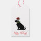 Étiquettes-cadeau Joyeuses vacances Chien noir Santa Hat Holly Festi