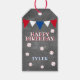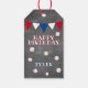 Joyeux cadeau d'anniversaire // Belle étiquette cadeau d'anniversaire de baseball pour les enfants. Le design a des balles de baseball et des drapeaux de bunting dans les couleurs rouge, blanc et bleu sur l'arrière - plan du tableau de bord. Personnalisez cette balise avec le nom d'un enfant. Idéal pour un garçon qui aime le baseball et d'autres sports.