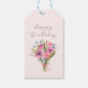Étiquettes-cadeau Joyeux anniversaire simple, rose, floral, script