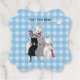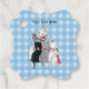 Cette série d'étiquettes de faveur pour toute occasion sont bleu clair et blanc plaid avec une mère chatte blanche heureuse assise avec ses trois chatons qui sont noirs, blancs et gris tous portant des rubans roses. Customisez votre texte pour votre occasion avec le modèle à l'avant et à l'arrière.