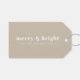 Une étiquette de cadeau de vacances moderne avec une typographie rétro audacieuse citant "joyeux & lumineux" en blanc sur une couleur beige en pierre neutre naturelle. L'accueil et le nom peuvent être facilement customisés pour une touche personnelle. Un design tendance, minimaliste et contemporain pour se démarquer de cette période de vacances !
