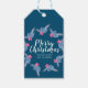Étiquettes-cadeau Joyeux Noël Aquarelle main bleu Poinsettia