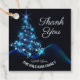 Cette belle et élégante étiquette de remerciement de Noël sera juste la chose d'envoyer des cadeaux et des faveurs à toutes les personnes dans votre vie que vous aimeriez dire merci à Noël et la saison des Fêtes. Un arrière - plan noir moderne met en valeur un bel arbre de Noël brillant avec une étoile bleue au-dessus de l'arbre, des lumières bleues brillantes et plus d'étoiles décorant les branches. Personnalisez avec votre nom de famille au bas de cette étiquette cadeau de remerciement pour cet arbre de Noël bleu.